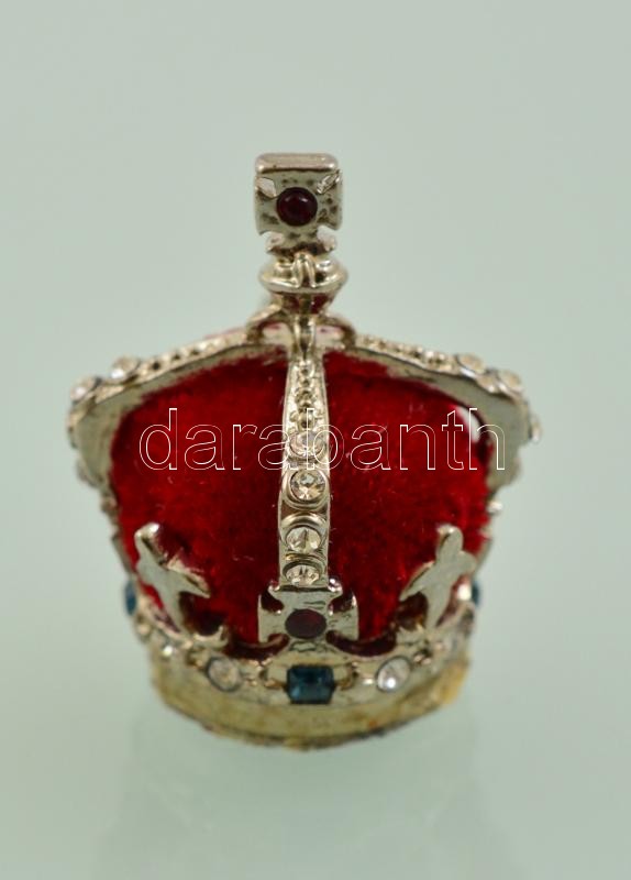 Leírás: Erzsébet anyakirálynő koronája miniatűr, díszdobozban, leírással