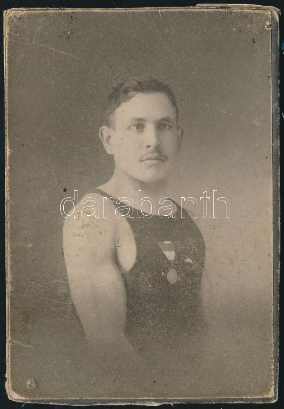Leírás: 1909 Horváth Barnabás birkózó, keményhátú fotó, hátoldalon feliratozva, 9,5×6,5 cm