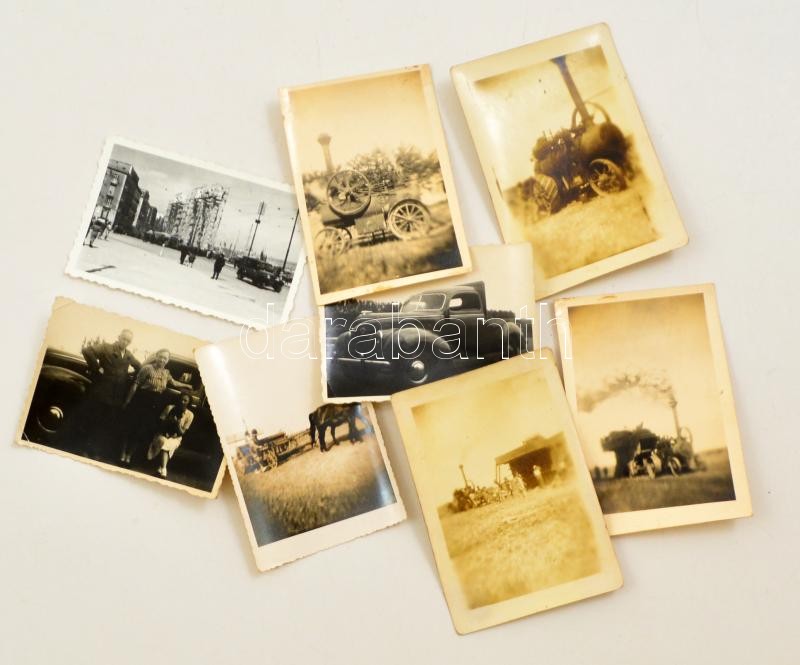 Leírás: cca 1940 Mezőgazdasági gépek, járművek fotói, 8 db, 8x6 cm