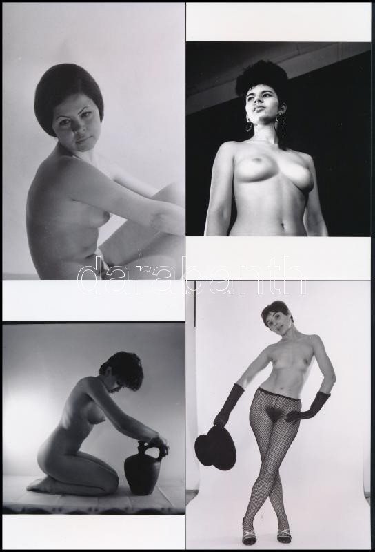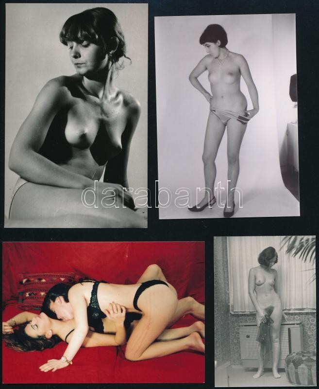 cca 1977 Az otthon melegében, szolidan erotikus felvételek, 6 db vintage negatív + 9 db vintage fotó és/vagy mai nagyítás, a negatívok és a papírképek között nincs összefüggés, 6x6 cm és 25x18 cm között