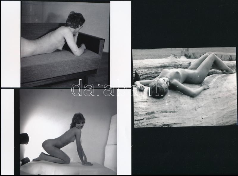 cca 1978 Felnőttkori játékok, szolidan erotikus felvételek, 7 db vintage negatív + 9 db vintage fotó és/vagy mai nagyítás, a negatívok és a papírképek között nincs összefüggés, 6x4 cm és 25x18 cm között