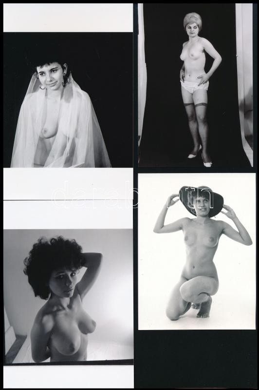 cca 1988 Előtte és utána, szolidan erotikus felvételek, 9 db vintage negatív + 9 db vintage fotó és/vagy mai nagyítás, a negatívok és a papírképek között nincs összefüggés, 6x4 cm és 25x18 cm között