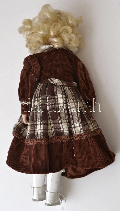 Leírás: Festett porcelán fejű baba, jelzés nélkül, jó állapotban, m: 38 cm