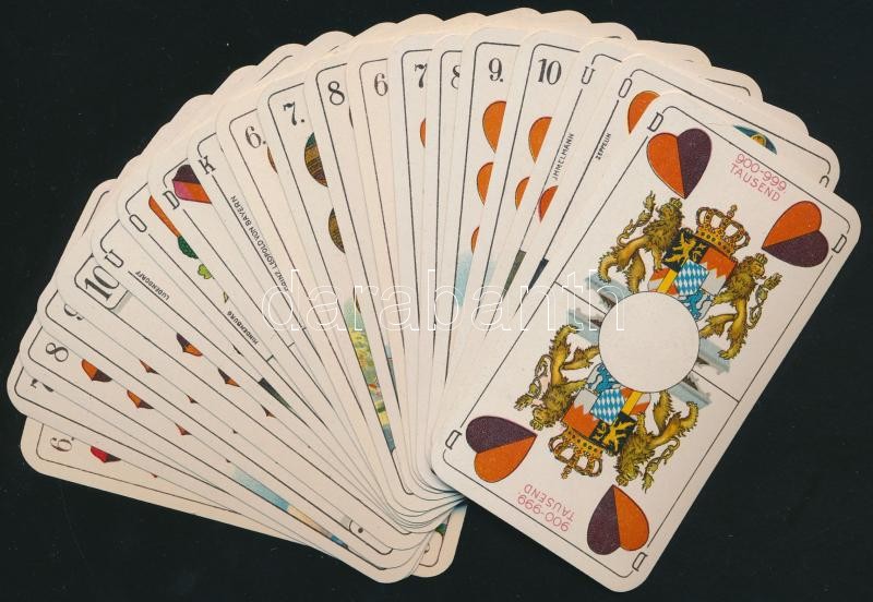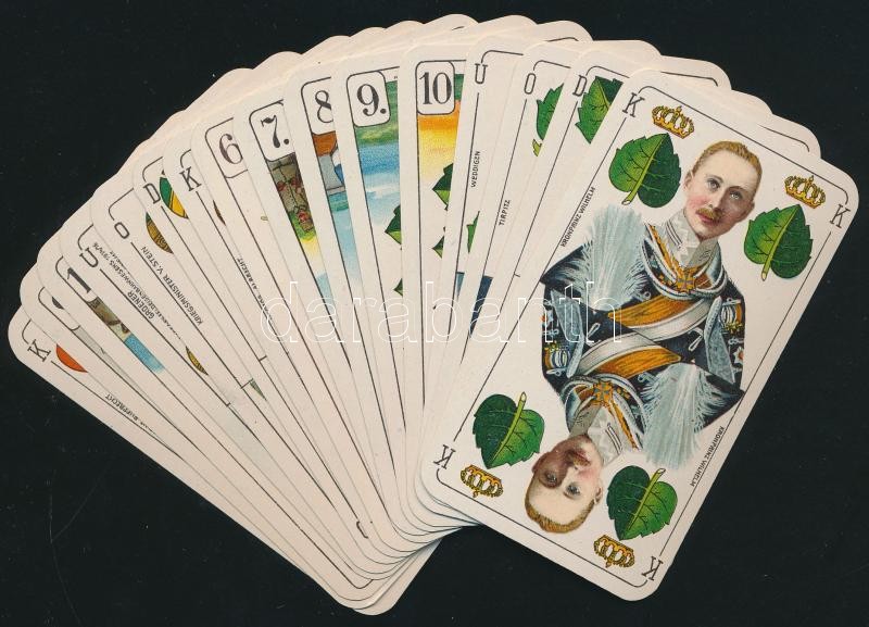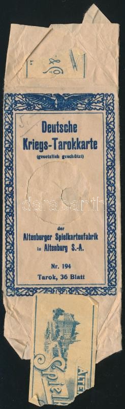 1918 36 lapos osztrák katonai háborús tarokk kártya pakli. Nagyon szép állapotban, aranyozott sarkokkal. hozzá eredeti papírzacskó / Kriegs-Tarokk German military war tarock card. 36 pieces in mint condition. with original pack.