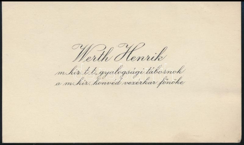 cca 1910 Werth Hernik tábornok névjegykártyája