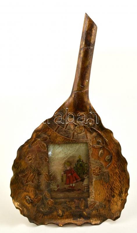 Leírás: 1887 Díszes, nagyméretű, masszív, levél formájó réz fényképtartó. Asztali kivitel, lábbal 52 cm. Hátoldalán felirat: "1887 Karácsony estve"