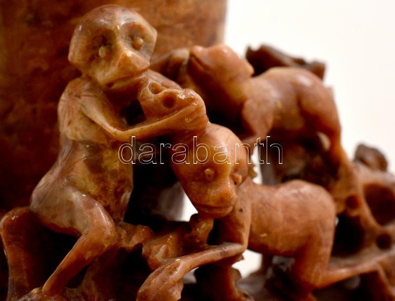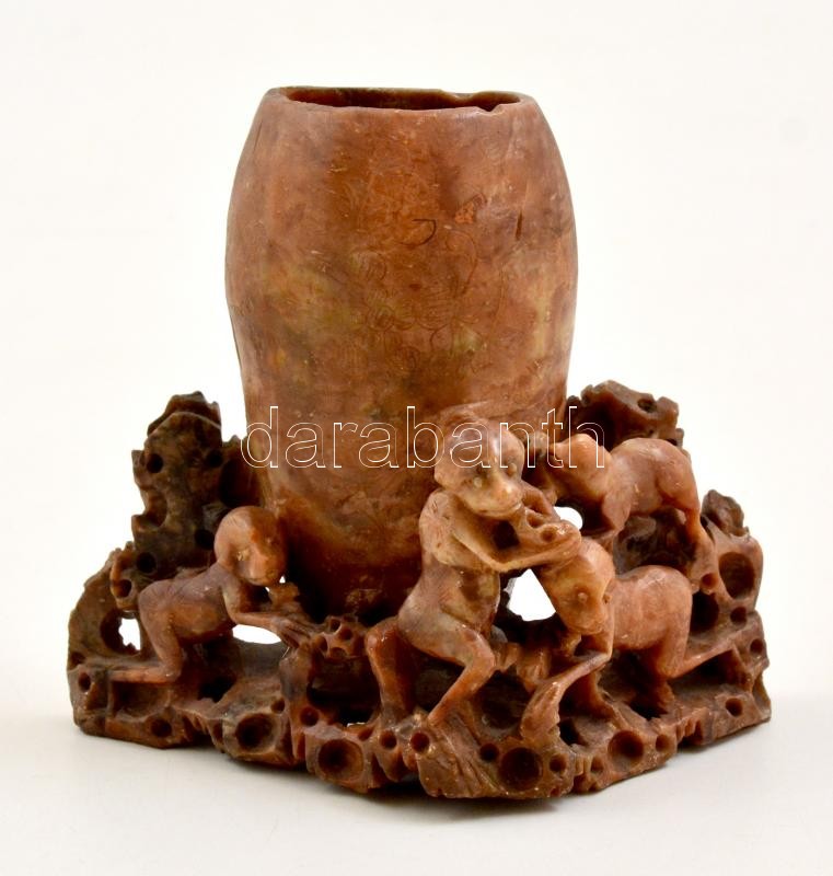 Leírás: Faragott zsírkő asztali ecsettartó, m: 13 cm