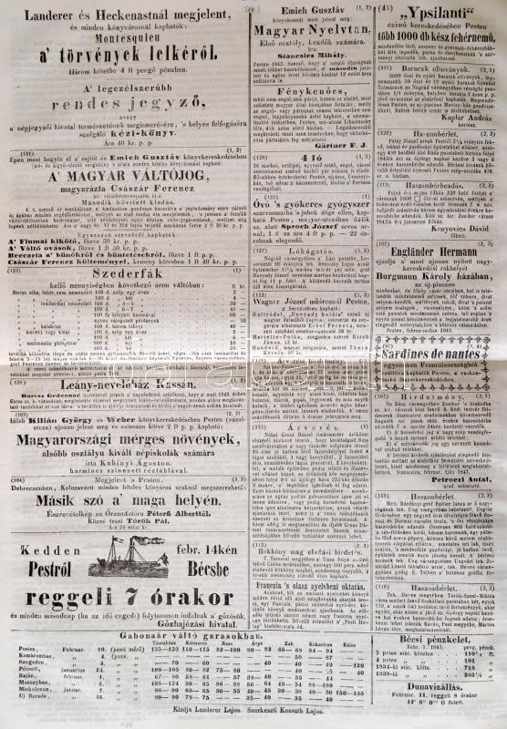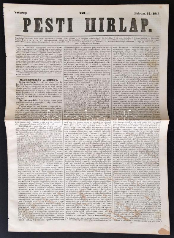 1843 Pesti Hírlap. 1843. febr. 21., 221 sz. Szerk.: Kossuth Lajos. Bp., Landerer Lajos, 97-104 p. Ifj. Bezerédj István vezércikkével. Korabeli reklámokkal. A címlapon folttal.