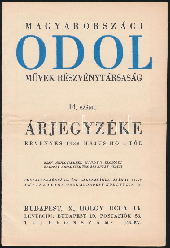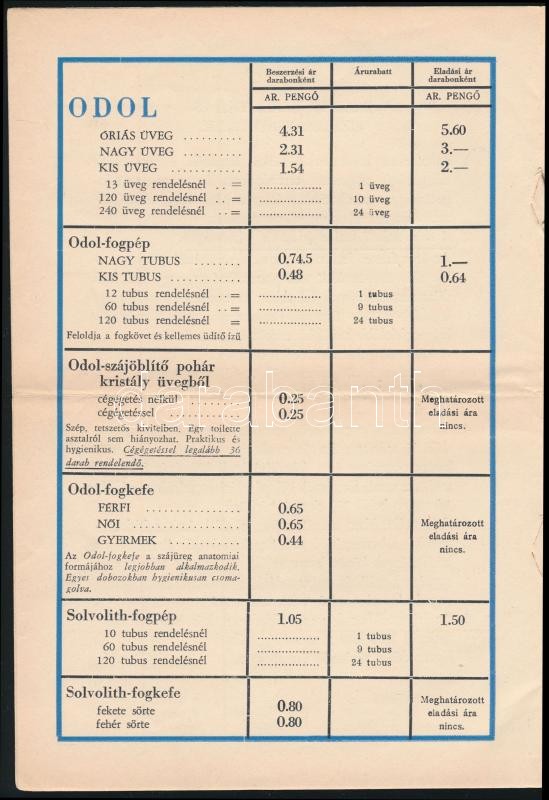 1938 Odol részvénytársaság árjegyzék 8 p https://www.darabanth.com/hu/336-Gyorsarveres/336.0/Mutargy-papirregiseg-egyeb/Nyomtatvanyok~500030/1938-Odol-reszvenytarsasag-arjegyzek-8-p~II1887683