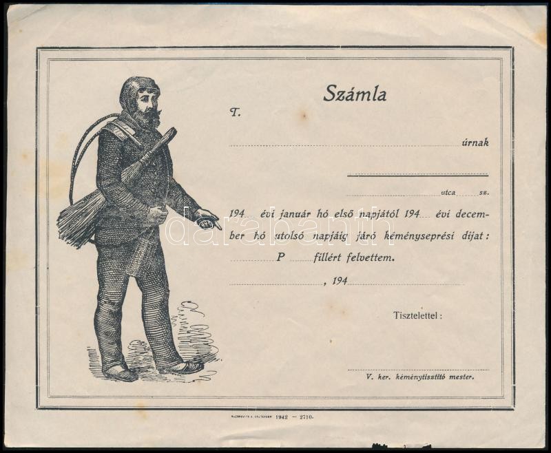 1942 Kitöltetlen kéményseprő számla
