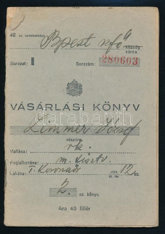 1943 Kitöltött vásárlási könyv https://www.darabanth.com/hu/336-Gyorsarveres/336.0/Mutargy-papirregiseg-egyeb/Okmanyok~500017/1943-Kitoltott-vasarlasi-konyv~II1744194