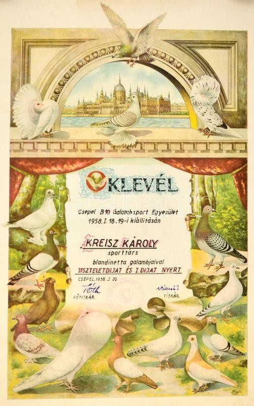 1958 a Csepel B10 Galambsport Egyesület díszes oklevele első helyezett... https://www.darabanth.com/hu/336-Gyorsarveres/336.0/Mutargy-papirregiseg-egyeb/Okmanyok~500017/1958-a-Csepel-B10-Galambsport-Egyesulet-diszes-oklevele-elso-helyezett-reszere-felcsavarva~II1887277