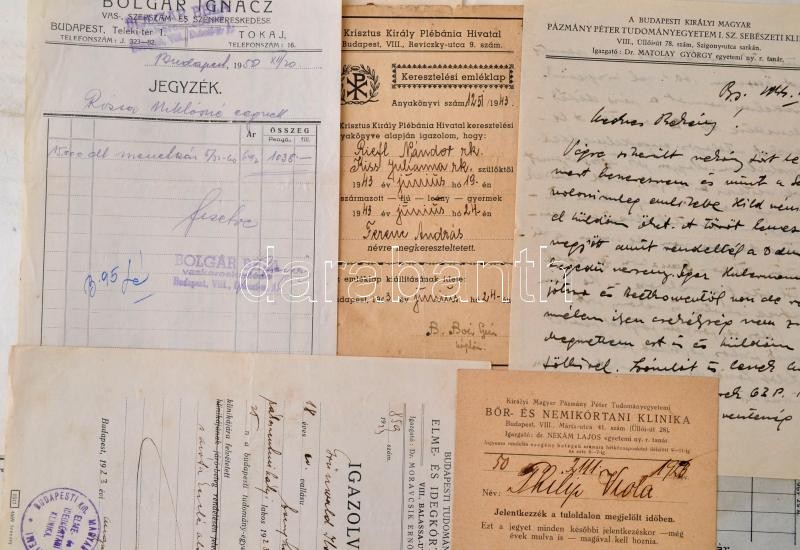 Leírás: Nagy vegyes papírrégiség tétel: iratok, levelek, nyomtatványok, érdekes, átnézésre érdemes anyag