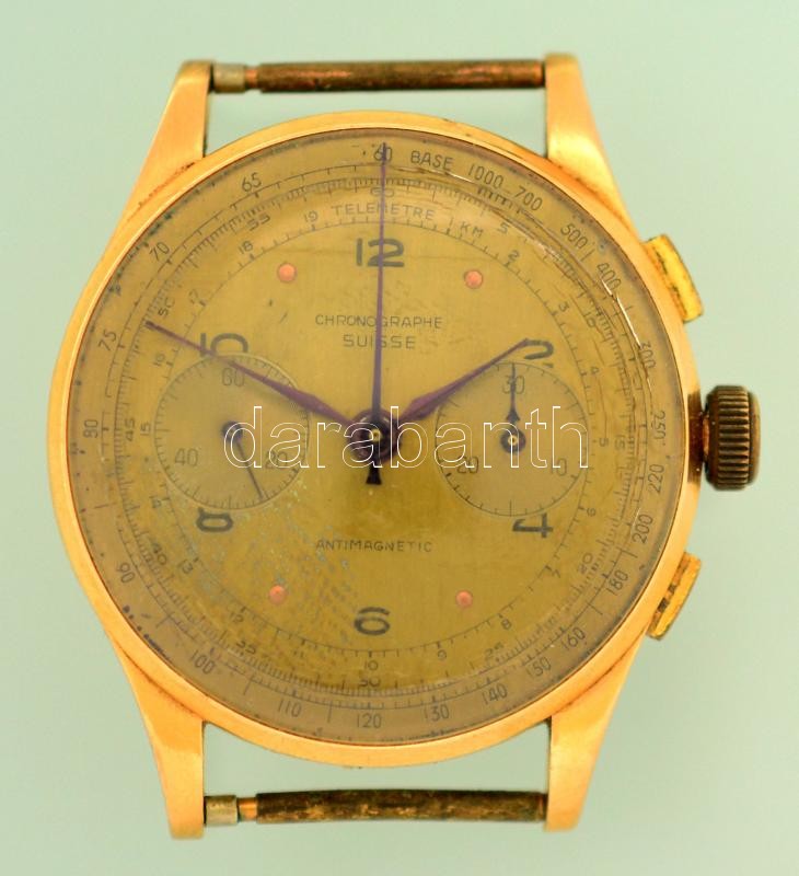 18K arany Cronograph karóra. Jelzett arany. Óraszerkezet javításra szo... https://www.darabanth.com/hu/336-Gyorsarveres/336.0/Mutargy-papirregiseg-egyeb/Orak~500010/18K-arany-Cronograph-karora-Jelzett-arany-Oraszerkezet-javitasra-szorul-d-4-cm-Hatlap-2-8g~II1883855