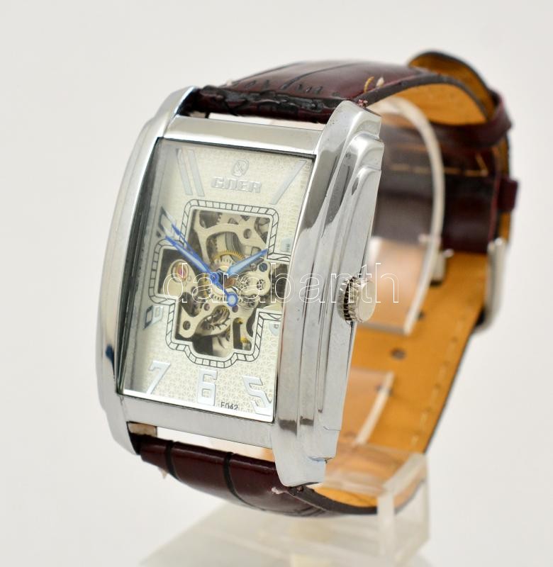 Leírás: Goer automata karóra, bőr szíjjal. Újszerű állapotban 4x4,5 cm