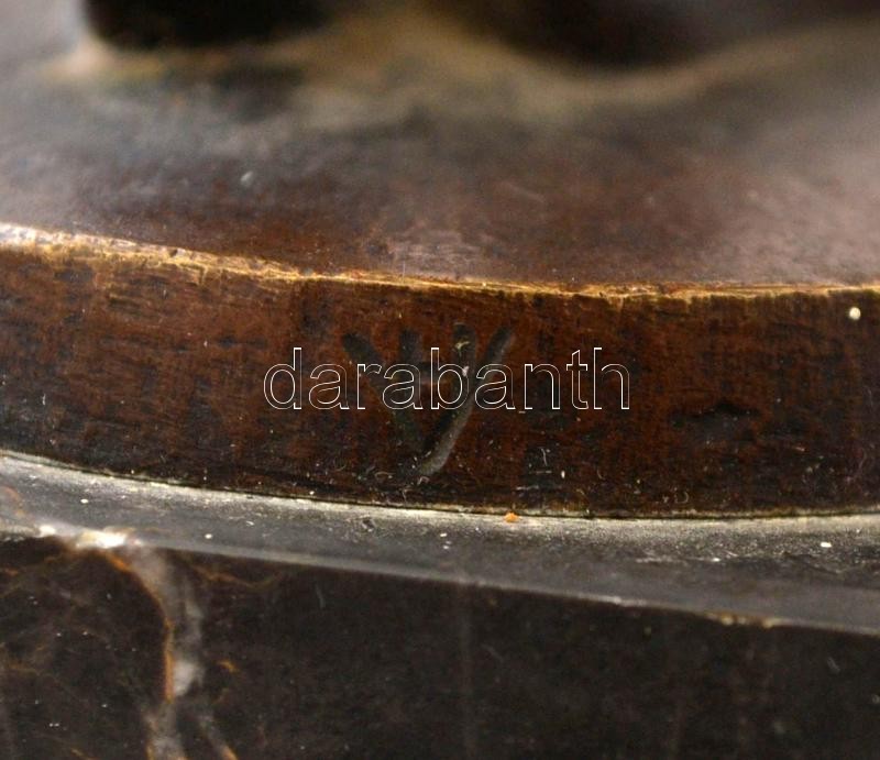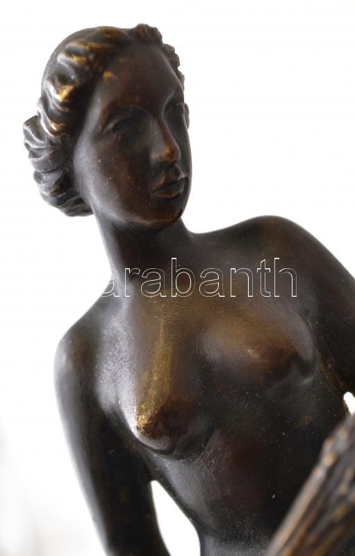 Leírás: Női akt gabonával, bronz szobor, jelzett (HV), alabástrom talapzaton, m: 28,5 cm