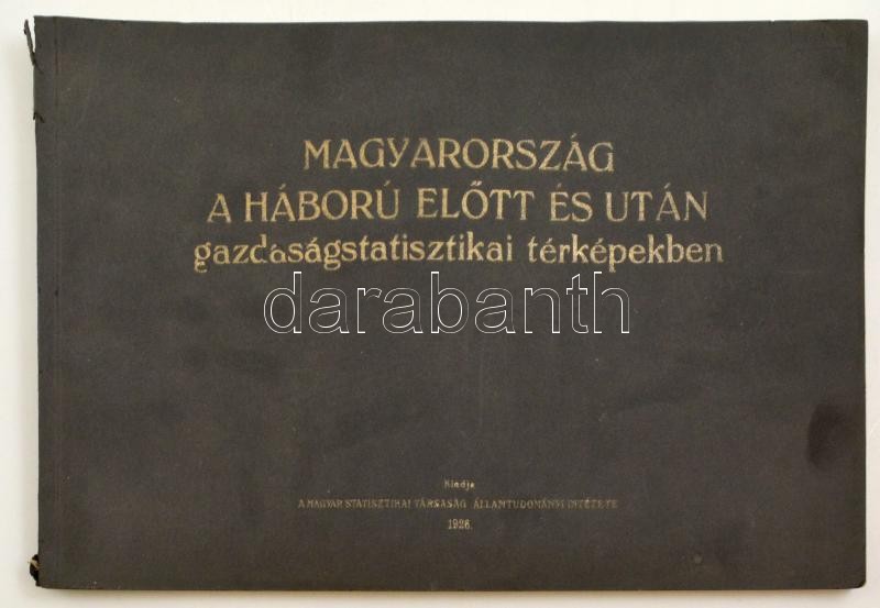 1926 Magyarország a háború előtt és után gazdaságstatisztikai térképekben. Szerk.: Edvi Illés Aladár-Halász Albert. Bp.,1926, Magyar Statisztikai Társaság Államtudományi Intézete,(Országos Központi Községi Nyomda), 157 p. Kiadói papírkötés, kissé sérült gerinccel, ezt leszámítva jó állapotban.
