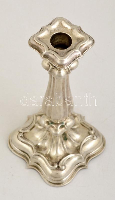 Leírás: Antik ezüst (Ag.) gyertyatartó, jelzett, mesterjeggyel, m:20 cm, nettó:262 g