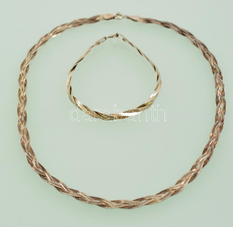 Ezüst(Ag) fonott nyaklánc és karkötő, jelzett, h: 16,5 és 39 cm, nettó... https://www.darabanth.com/hu/336-Gyorsarveres/336.0/Nemesfem-Disztargyak-Orak-es-Ekszerek/Nemesfem-Disztargyak-Orak-es-Ekszerek~2000357/EzustAg-fonott-nyaklanc-es-karkoto-jelzett-h-16-5-es-39-cm-netto-12-1-g~II1888815