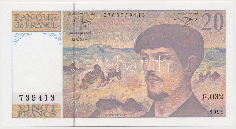 France 1991. 20 Francs C:AU https://www.darabanth.com/hu/336-Gyorsarveres/336.0/Numizmatika/Kulfoldi-bankjegyek~1500012/Franciaorszag-1991-20Fr-TI--France-1991-20-Francs-CAU~II1887632