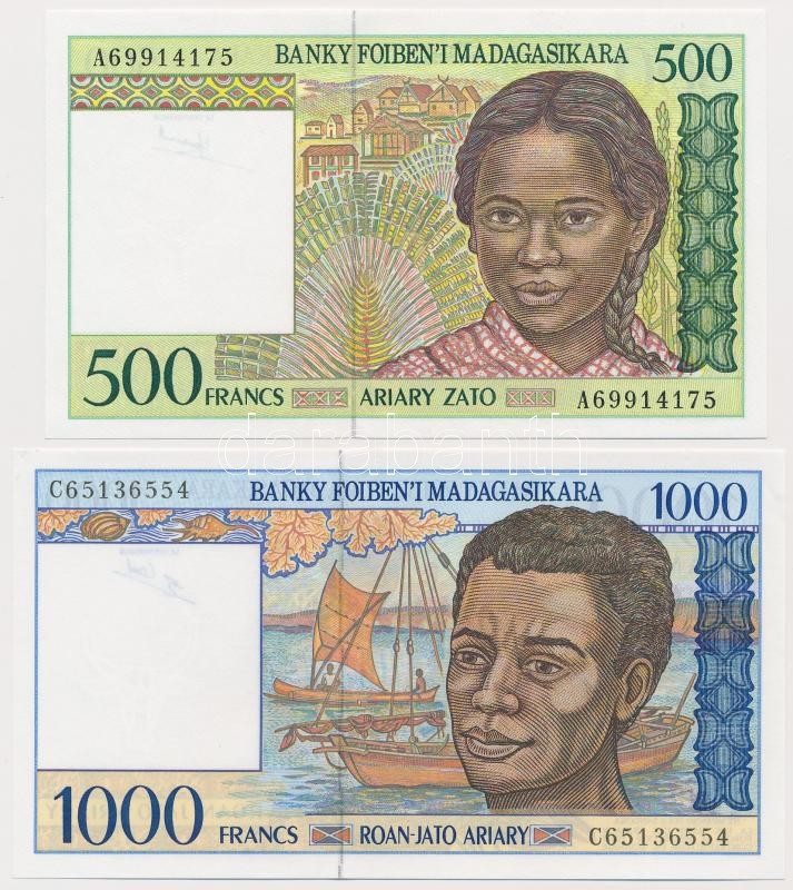 Madagaszkár 1994. 500Fr + 1000Fr T:I