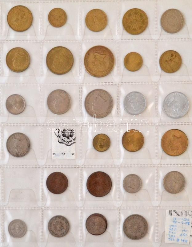 170db-os vegyes külföldi fémpénz tétel albumban, közte Peru, Uruguay Venezuela T:1-2