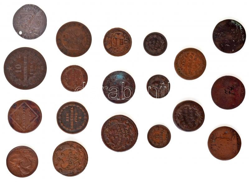 19db-os vegyes külföldi réz- és bronzpénz tétel, közte 1db ezüst, benne érdekesebb darabok: Olasz Államok / Velence 1523-1538. Marcello Ag "Andrea Gritti"; Franciaország / Második Császárság 1864A 10c Br "III. Napóleon" T:2-3 ly.