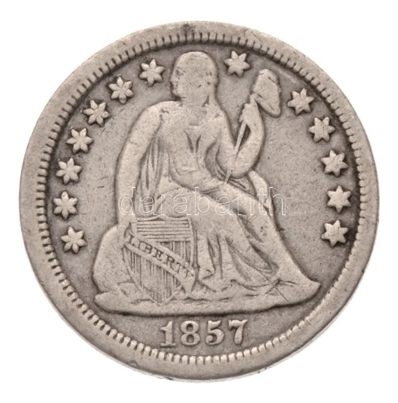 USA 1857. 1 Dim... https://www.darabanth.com/hu/336-Gyorsarveres/336.0/Numizmatika/Kulfoldi-fem-es-ezustpenzek~1500013/Amerikai-Egyesult-Allamok-1857-1d-Ag-2-38g-T3-ph-USA-1857-1-Dime-Ag-2-38g-CF-edge-error-~II1884997