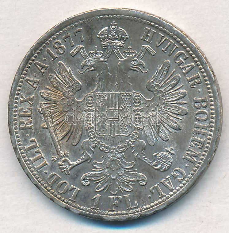 Austria 1877... https://www.darabanth.com/hu/336-Gyorsarveres/336.0/Numizmatika/Kulfoldi-fem-es-ezustpenzek~1500013/Ausztria-1877-1Fl-Ag-Ferenc-Jozsef-T1-ph-Austria-1877-1-Florin-Ag-Franz-Joseph-CAU-edge-~II1886515