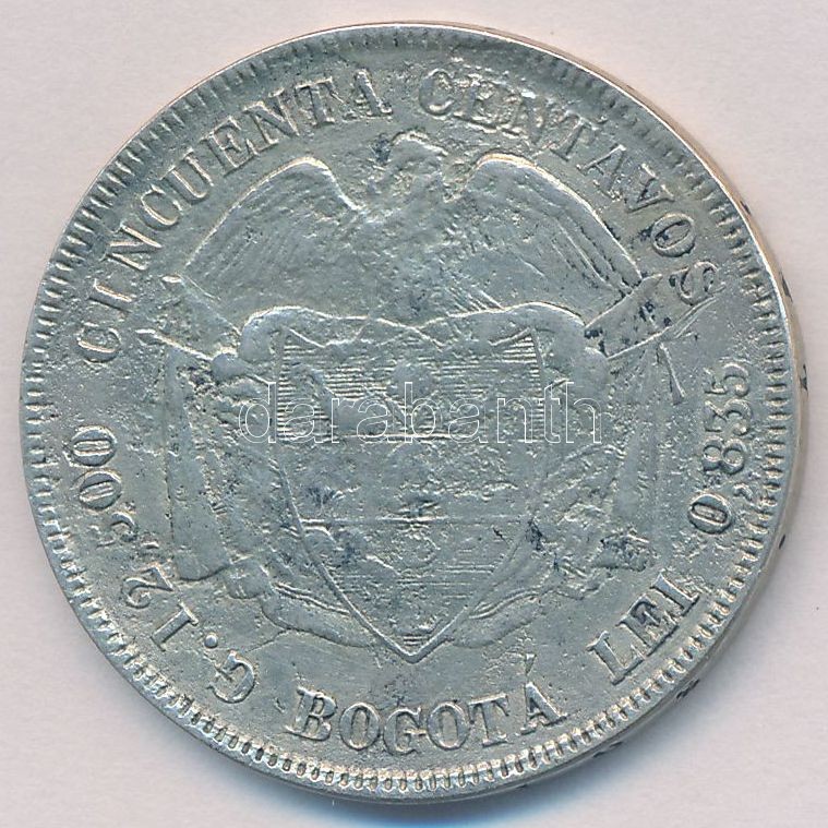 Columbia 1879. 50 Centavos Ag (11,... https://www.darabanth.com/hu/336-Gyorsarveres/336.0/Numizmatika/Kulfoldi-fem-es-ezustpenzek~1500013/Kolumbia-1879-50c-Ag-11-37g-T3-Columbia-1879-50-Centavos-Ag-11-37g-CF-Krause-KM231771~II1885650