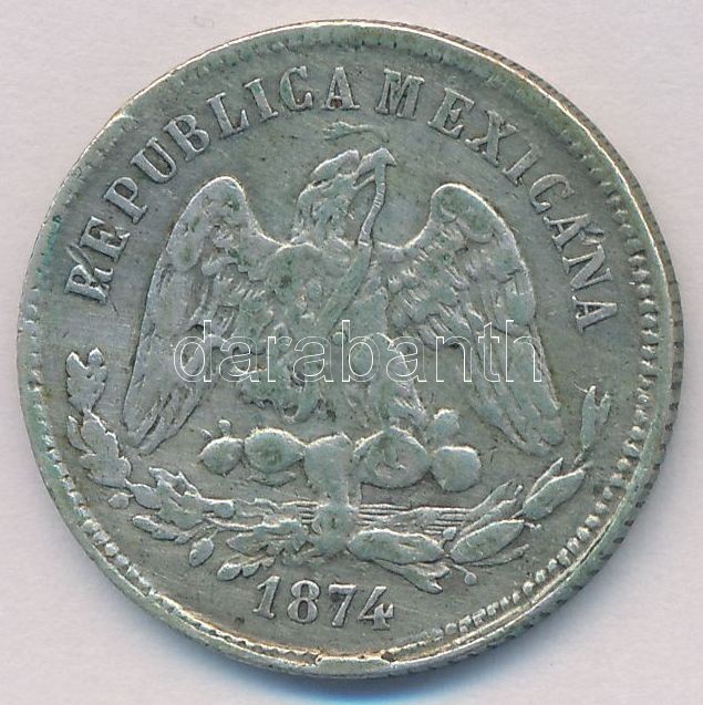 Mexico / Guanajuato 1874. 25... https://www.darabanth.com/hu/336-Gyorsarveres/336.0/Numizmatika/Kulfoldi-fem-es-ezustpenzek~1500013/Mexiko-Guanajuato-1874-25c-Ag-T2-ph-Mexico-Guanajuato-1874-25-Centavos-Ag-CXF-edge-error-~II1885971