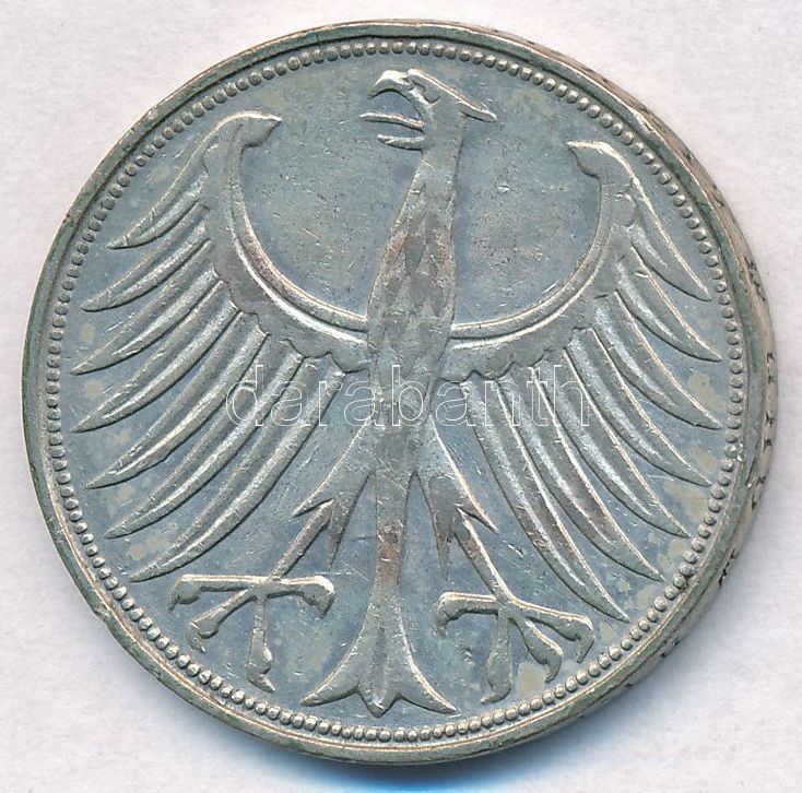 FRG 1951G 5 Mark Ag C:XF,VF edge error https://www.darabanth.com/hu/336-Gyorsarveres/336.0/Numizmatika/Kulfoldi-fem-es-ezustpenzek~1500013/NSZK-1951G-5M-Ag-T2-2-ph-FRG-1951G-5-Mark-Ag-CXF-VF-edge-error~II1874458