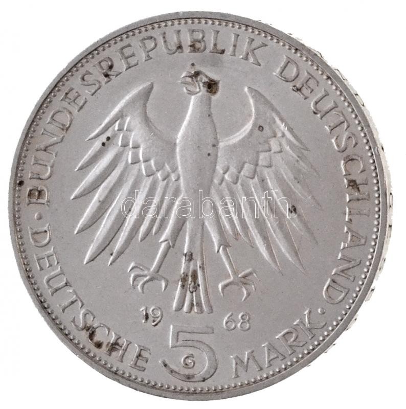FRG 1968G 5 Mark Ag "500th Anniversary - Death of Johannes Gutenberg" C:XF