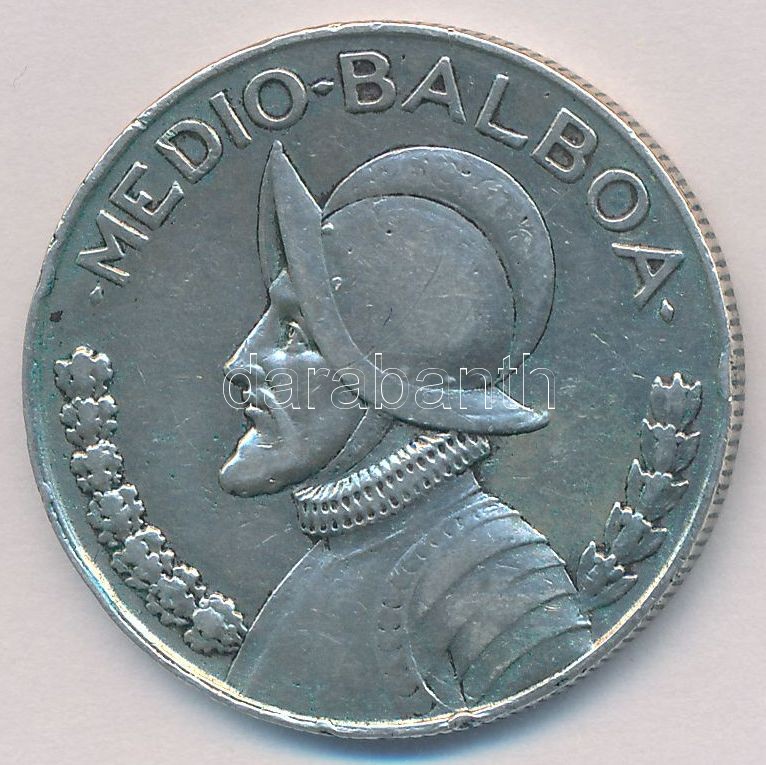 Leírás: Panama 1947. 1/2B Ag "Vasco Nunez de Balboa" T:2- Panama 1947. 1/2 Balboa Ag "Vasco Nunez de Balboa" C:VF