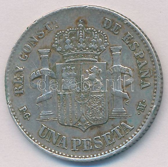 Sp... https://www.darabanth.com/hu/336-Gyorsarveres/336.0/Numizmatika/Kulfoldi-fem-es-ezustpenzek~1500013/Spanyolorszag-1891-1P-Ag-XIII-Alfonz-5-03g-T2-ph-Spain-1891-1-Peseta-Ag-Alfonso-XIII-5~II1885638