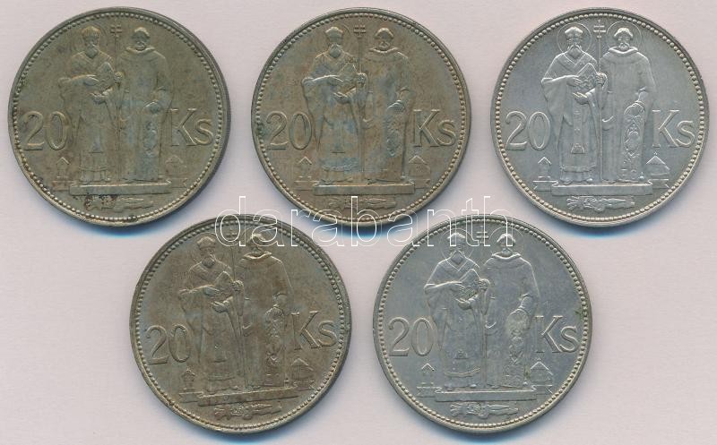 Leírás: Szlovákia 1941. 20K Ag "Cirill és Metód" (5x) T:2 patina
