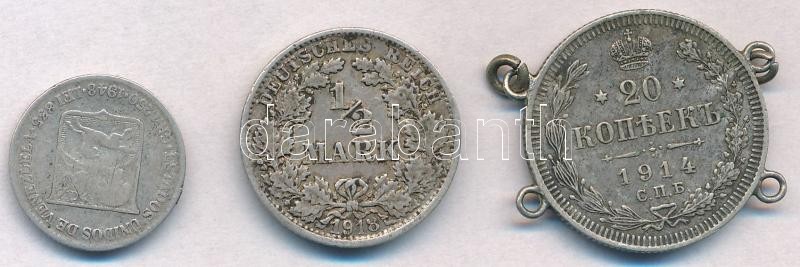 Vegyes: Német Birodalom 1918F 1/2M Ag + Orosz Birodalom 1914. 20k Ag négy füllel + Venezuela 1948. 25c Ag T:2-,3