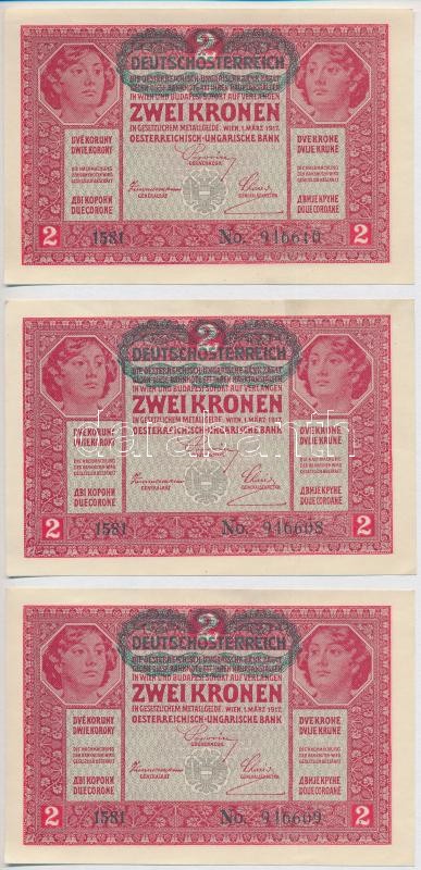 Leírás: 1917. 2K (3x) sorszámkövetők, mindhárom "Deutschösterreich" felülbélyegzéssel T:I,I-