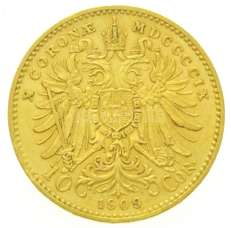 Austria 1909. 10 Corona Au "Franz Joseph small head" (3,41g/0.900) C:XF small edge error