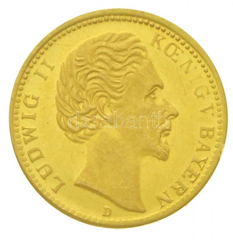 Német Államok / Bajorország 1877D 5M Au "II. Lajos" (1,99g/0.900) T:2 ph.