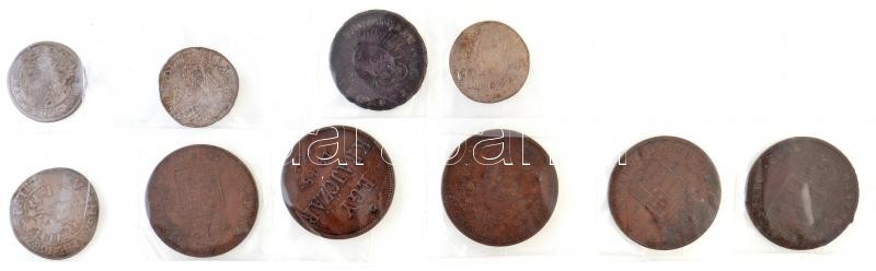 Leírás: 10db-os vegyes magyar krajcár, poltura és rézdenár tétel, közte 1700. Poltura Ag "I. Lipót"; 1848. 1kr Cu (4x); 1868KB 4kr Cu T:2-3