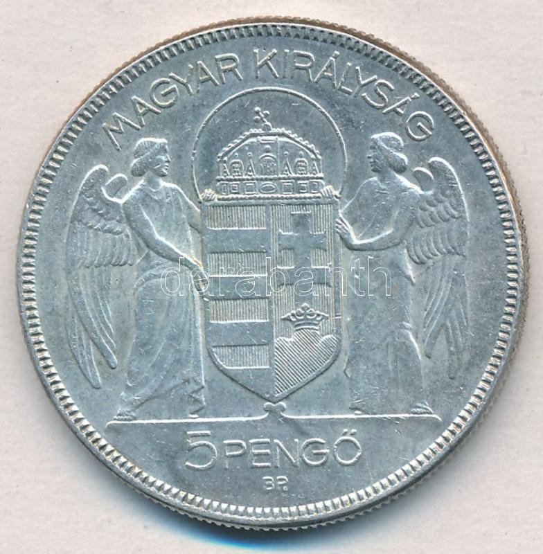 Leírás: 1930. 5P Ag "Horthy jobbra" T:2,2- ph.