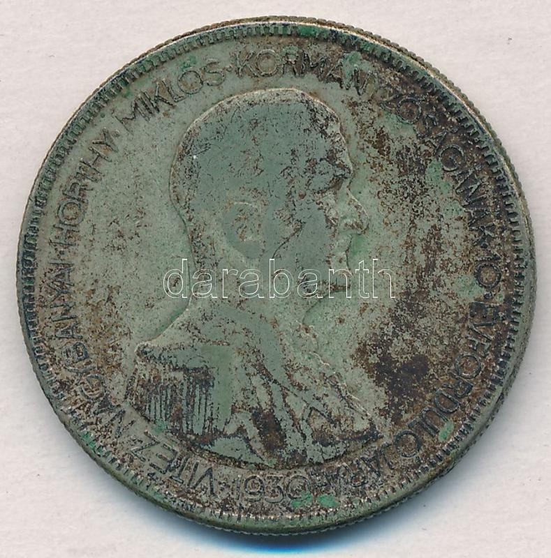 1930. 5P Ag "Horthy jobbra" T:3 erős patina