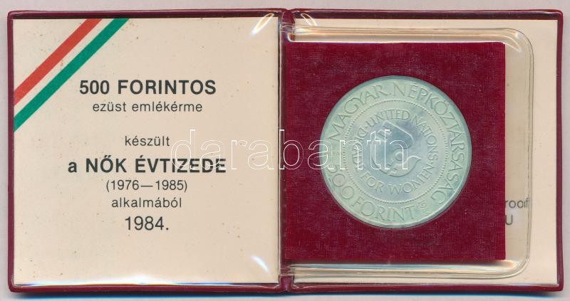 Leírás: 1984. 500Ft Ag "Nők évtizede" eredeti tokban, tanúsítvánnyal T:BU patina