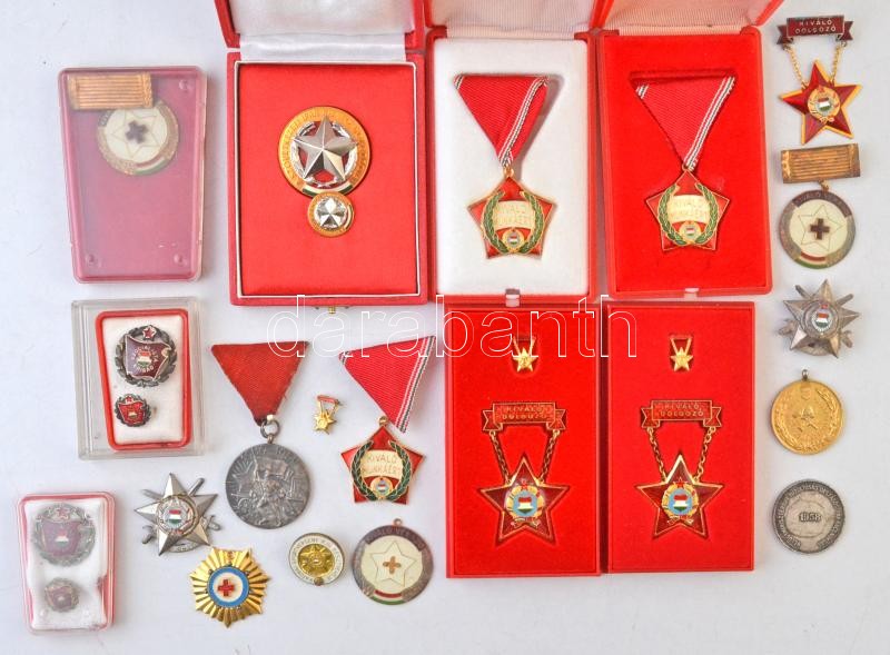 Leírás: ~20db-os szocialista kitüntetés és jelvény tétel, közte 1959. "Tanácsköztársasági Emlékérem" ezüstözött Br érem, mellszalaggal T:vegyes