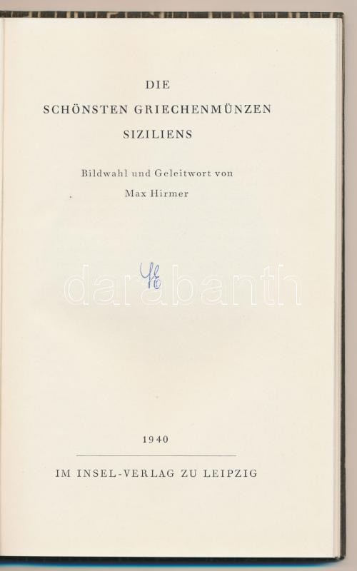 Leírás: Die Schönsten Griechenmünzen Siziliens - 48 Bildtafeln - Insel-Bücherei Nr. 559. Lipcse, Im Insel-Verlag zu Leipzig, 1940. Újszerű állapotban.