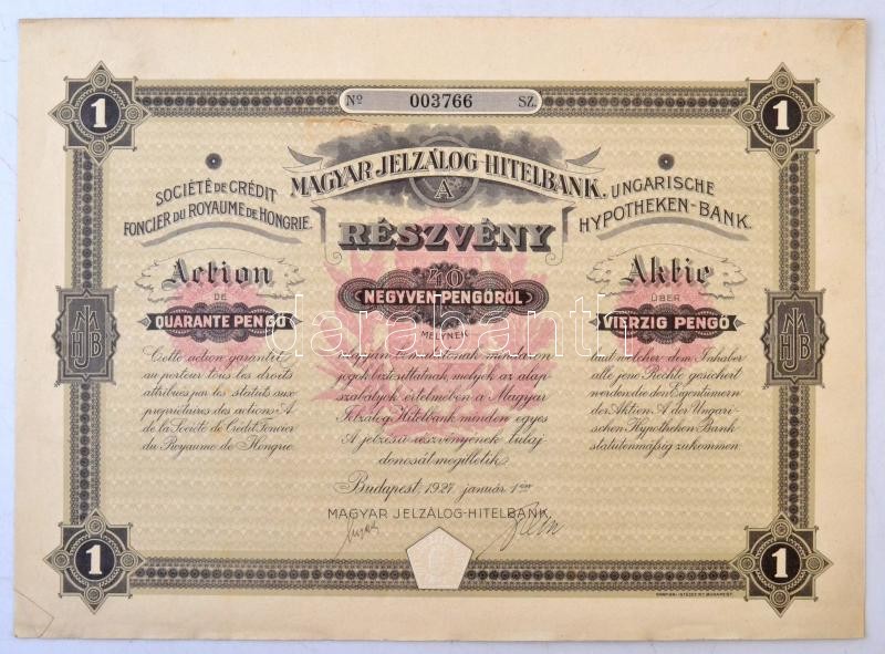 Budapest 1927. "Magyar Jelzálog-Hitelbank" részvénye 40P-ről... https://www.darabanth.com/hu/336-Gyorsarveres/336.0/Numizmatika/Reszvenyek-es-sorsjegyek~1500005/Budapest-1927-Magyar-Jelzalog-Hitelbank-reszvenye-40P-rol-szarazpecsettel-szelvenyekkel-~II1887315
