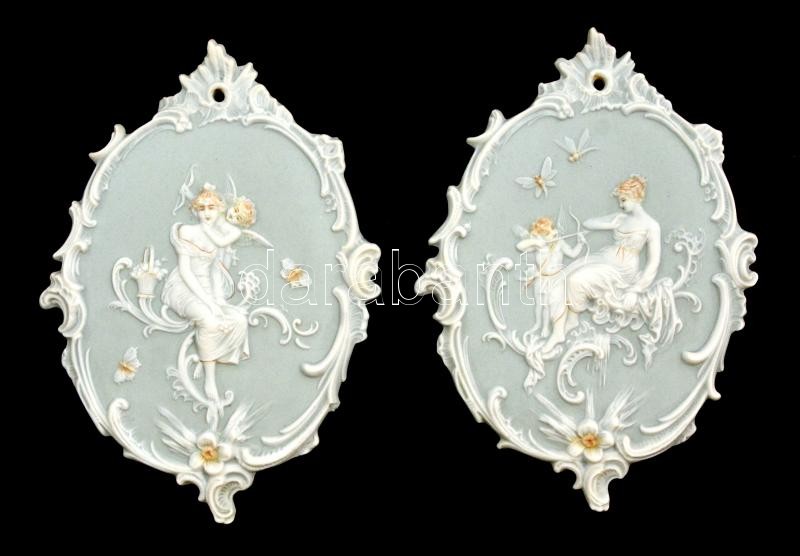 Leírás: Biszkvit fali dísz, 2 db, jelzés nélkül, hibátlanok, 18,5×13 cm