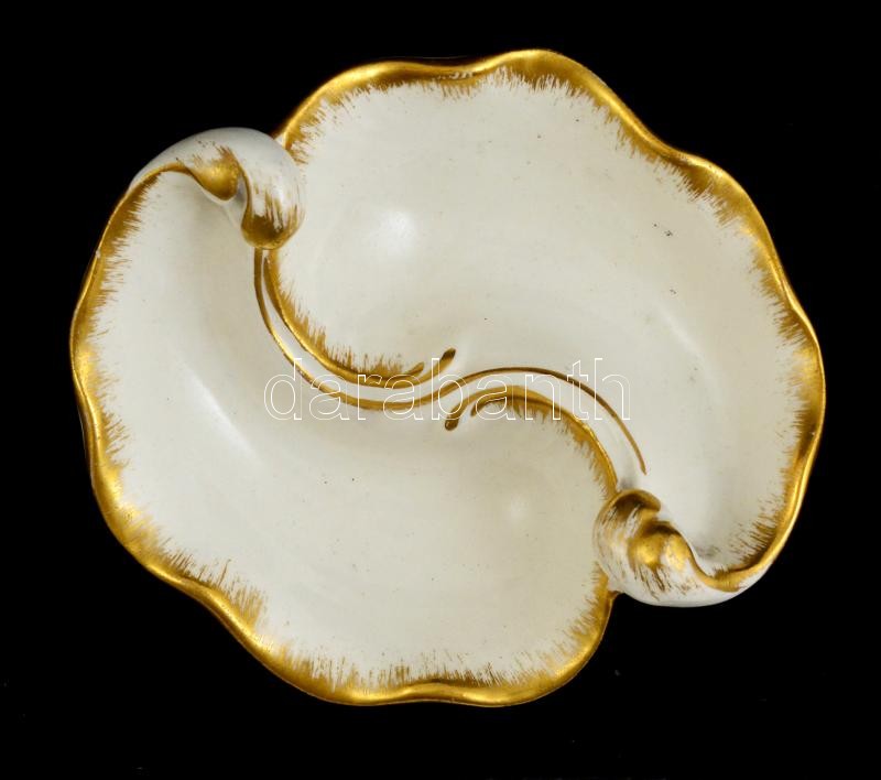 Leírás: Francia Sarreguemines fajansz fűszertartó só-bors tálka, kézzel festett, jelzett, máz alatti hajszál repedéssel, 8,5×7,5 cm