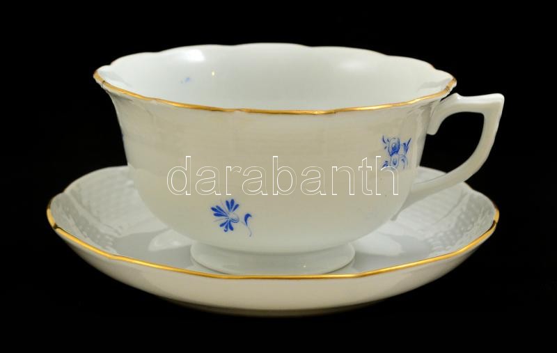 Leírás: Herendi kék virág mintás teáscsésze aljjal, Jelzett, hibátlan.